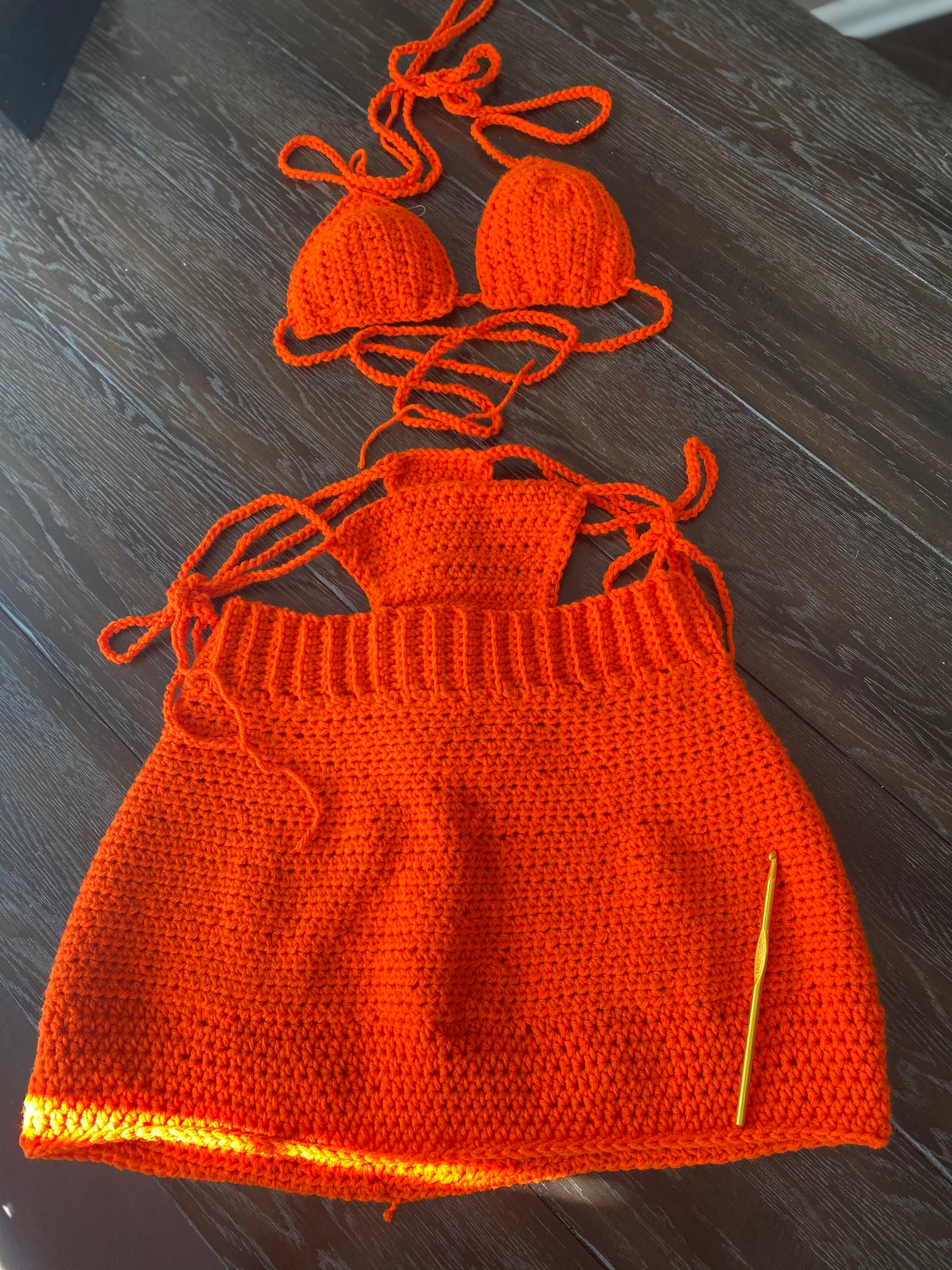 Back to the streets is a handmade three piece thongkini crochet set.